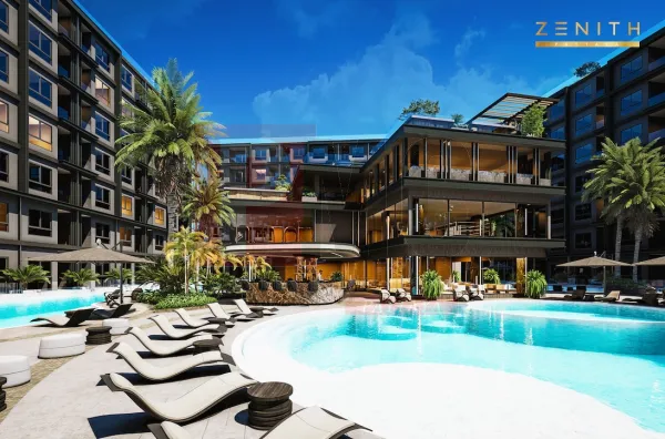 Fedezd fel a Zenith Pattayát, amely újraértelmezi a prémium lakhatást, magas színvonalú élményt kínálva modern és innovatív szolgáltatásokkal, amelyek támogatják az egészségtudatos és vibráló életmódot. Az elegancia és modernitás új normáját állítja fel Pattaya szívében, ahol könnyedén hozzáférhetsz a pezsgő városi atmoszférához, a nyugodt strandokhoz és az ikonikus látnivalókhoz. A Zenith Pattaya elkötelezett amellett, hogy elősegítse a maximális jólétet, kivételes szolgáltatásokkal, például lenyűgöző fő medencével, japán Onsen fürdővel és fitnesz komplexummal, mindez buja trópusi tájban. Csak pár lépésre a fontos közlekedési összeköttetésektől, ez a fejlesztés egyszerű hozzáférést biztosít számos bajnokságot nyert golfpályához, valamint az U-Tapao repülőtérhez Sattahipben és a Suvarnabhumi repülőtérhez Bangkokban. A három hét emeletes épületből álló, 6 rai területen elhelyezkedő Zenith Pattaya a japán ihletésű tervezés remekműve. Kínálunk 582 gyönyörűen megtervezett lakóegységet, amelyek különböző életstílusokhoz illeszkednek. Választhatsz tágas, 30 négyzetméteres 1 szobás apartmanokból egészen a 75 négyzetméteres, tágas 2 szobás elrendezésekig, beleértve a limitált számú exkluzív földszinti apartmant is, amely közvetlen medencetérést biztosít. Minden egység magas mennyezettel, modern építészettel, kifinomult európai szabványú konyhákkal és fürdőszobákkal rendelkezik, LED tükörrel és modern elektronikus toalett rendszerekkel, míg a korszerű energiatakarékos légkondicionáló biztosítja a kényelmet egész évben. A Zenith Pattaya szívében egy világklasszis japán Onsen található, amely négy szinttel a wellness és pihenés jegyében áll.