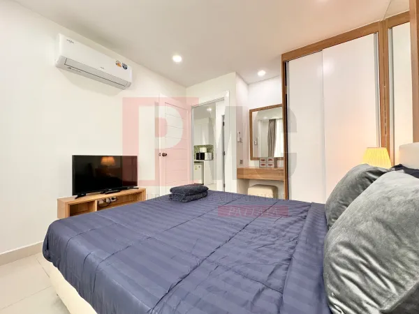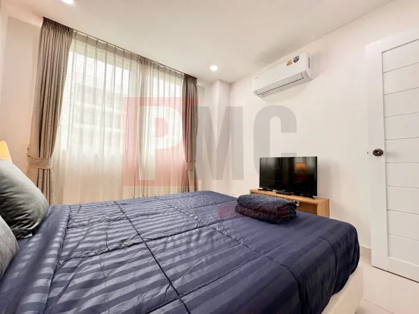 Medencére néző lakás kiadó Jomtien területén, mindössze 600 méterre a strandtól és 10 percre autóval Central Pattayától. Kiváló elhelyezkedés, közlekedési lehetőségekkel, helyi piaccal, 7/11 üzletekkel, éttermekkel és sok mással. Az épületkomplexum 24 órás biztonsági szolgálattal, kulcskártyás beléptetőrendszerrel, CCTV kamerával, recepcióval, közös üdülő stílusú medencével, edzőteremmel és taxi szolgáltatással rendelkezik. A lakás egy 35 négyzetméteres, 1 hálószobás egység, amely az 5. emeleten található, medencére néző kilátással. A lakást újrafestették és jól karbantartották.