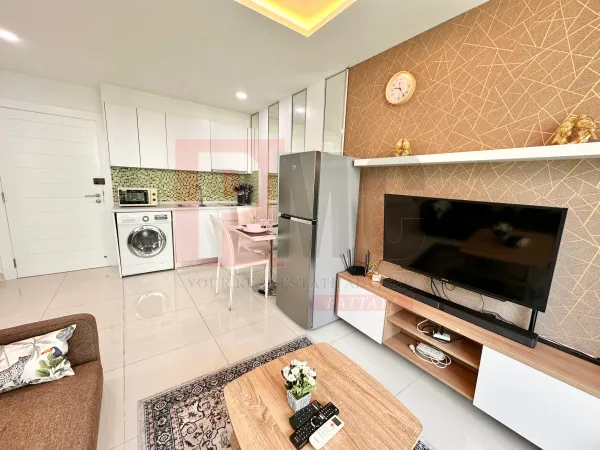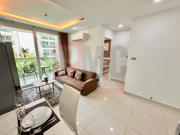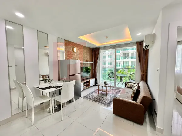 Medencére néző lakás kiadó Jomtien területén, mindössze 600 méterre a strandtól és 10 percre autóval Central Pattayától. Kiváló elhelyezkedés, közlekedési lehetőségekkel, helyi piaccal, 7/11 üzletekkel, éttermekkel és sok mással. Az épületkomplexum 24 órás biztonsági szolgálattal, kulcskártyás beléptetőrendszerrel, CCTV kamerával, recepcióval, közös üdülő stílusú medencével, edzőteremmel és taxi szolgáltatással rendelkezik. A lakás egy 35 négyzetméteres, 1 hálószobás egység, amely az 5. emeleten található, medencére néző kilátással. A lakást újrafestették és jól karbantartották.