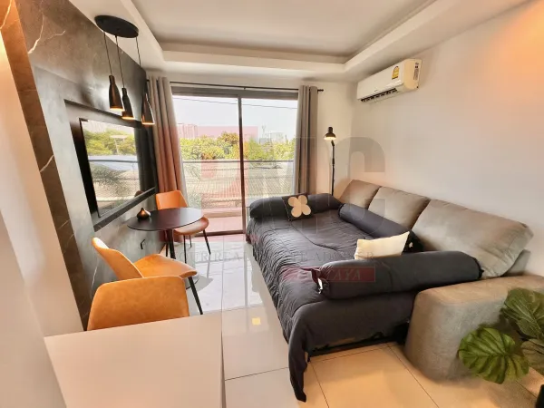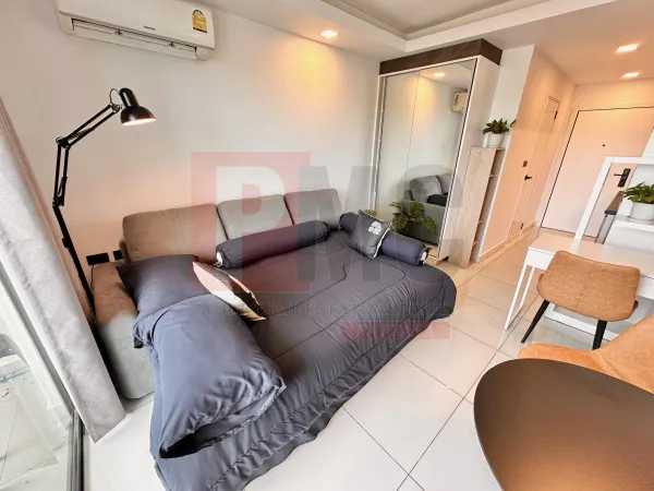 Kertre néző lakás kiadó Jomtien területén, mindössze 600 méterre a strandtól és 10 percre autóval Central Pattayától. Kiváló elhelyezkedés, közlekedési lehetőségekkel, helyi piaccal, 7/11 üzletekkel, éttermekkel és sok mással. Az épületkomplexum 24 órás biztonsági szolgálattal, kulcskártyás beléptetőrendszerrel, CCTV kamerával, recepcióval, közös üdülő stílusú medencével, edzőteremmel és taxi szolgáltatással rendelkezik. A lakás egy 26 négyzetméteres stúdió típusú egység, amely a 3. emeleten található, kertre néző kilátással. A lakás teljesen berendezett, mosógéppel, TV-vel és hűtőszekrénnyel.