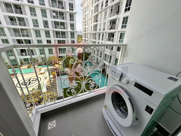 Lakás kiadó Jomtien területén, mindössze 600 méterre a strandtól és 10 percre autóval Central Pattayától. Kiváló elhelyezkedés, közlekedési lehetőségekkel és transzferbusszal a strandhoz. Az épületkomplexum 24 órás biztonsági szolgálattal, kulcskártyás beléptetőrendszerrel, CCTV kamerával, recepcióval, közös üdülő stílusú medencével, edzőteremmel és taxi szolgáltatással rendelkezik. A lakás egy 1 hálószobás egység, 35 négyzetméteres lakótérrel és fürdőszobával, a 4. emeleten található. Teljesen felszerelt európai konyha, teljesen berendezett, 40" LCD TV, kábel TV, nagysebességű wifi és mosógép.