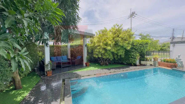 This House is situated in East side of Pattaya area and is it an private pool house. 3 Bedrooms villa in great location just 5 minutes from Sukhumvit main road and 20 minutes from Central Pattaya. Close to main road, very easy to find in that area 7/11, massage shop, restaurant’s local markets. The house is coming fully furnished and 2 bathrooms with living space 291 sqm. The house has private swimming pool & garden, perfect and harmonic living who buy this house.